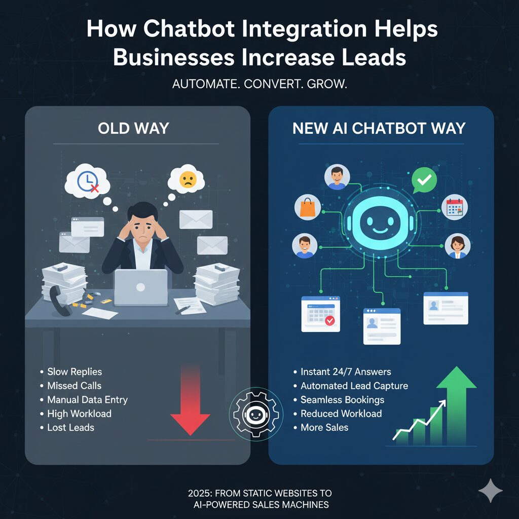 Introduction: Why Chatbots Are Now a Business Essential In 2025, websites are no longer just informational platforms. They are sales machines, automated support centers, and round-the-clock customer service hubs — thanks to AI chatbots. Today’s customers expect: A business that makes customers wait loses leads instantly. This is why AI chatbot integration is now one […]